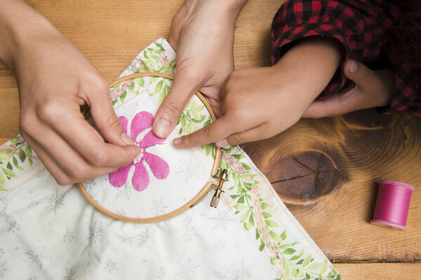 696771424 Children's hands playing with Christmas gift and teddy bear