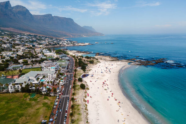 867462510 Enjoy the idyllic view of Camps Bay beach in Cape Town, where soft sands meet azure waters. The vibrant atmosphere is perfect for holidaymakers seeking relaxation and adventure under the sun.