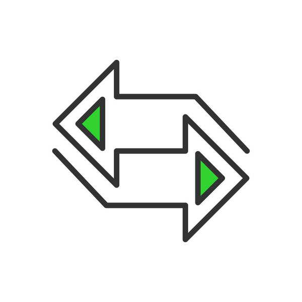 722762536 Right left arrows, in line design, green. Right, left, arrows, directional, navigation, pointer, movement on white background vector. Right left arrows editable stroke icon
