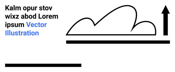 803329258 Black arrow pointing upward alongside bold horizontal lines and abstract cloud outline. Text in different fonts provides design contrast. Ideal for branding, layouts, posters, infographics