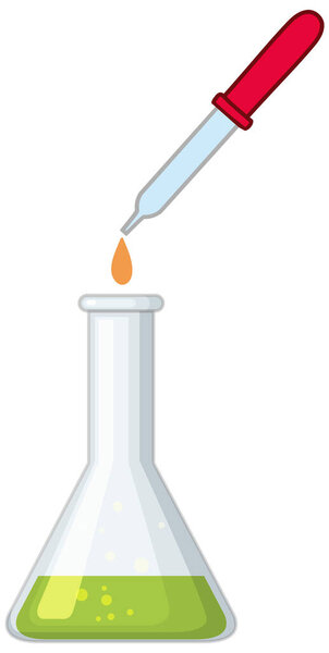 839962272 Vector illustration of dropper adding orange liquid to green solution in Erlenmeyer flask.