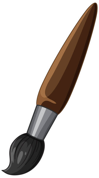 836667222 Brown wooden paintbrush with black bristles, isolated, clean vector style, white background