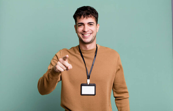 621572110 Adult man pointing at camera choosing you with an acccess identity card