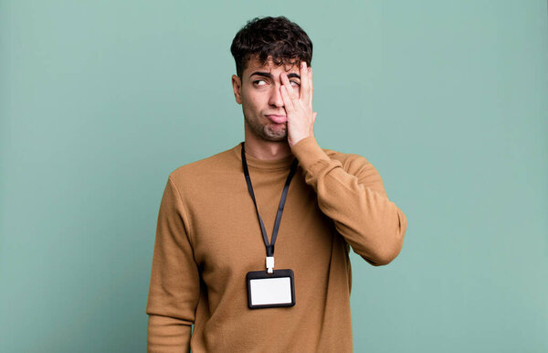 621573006 Adult man feeling bored, frustrated and sleepy after a tiresome with an acccess identity card