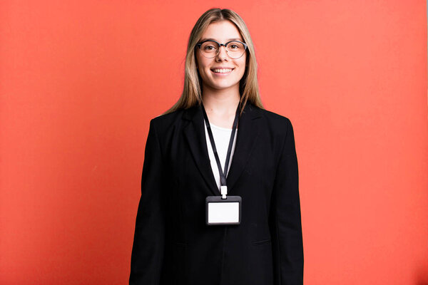 660792684 Young adult pretty businesswoman and a accreditation pass card id