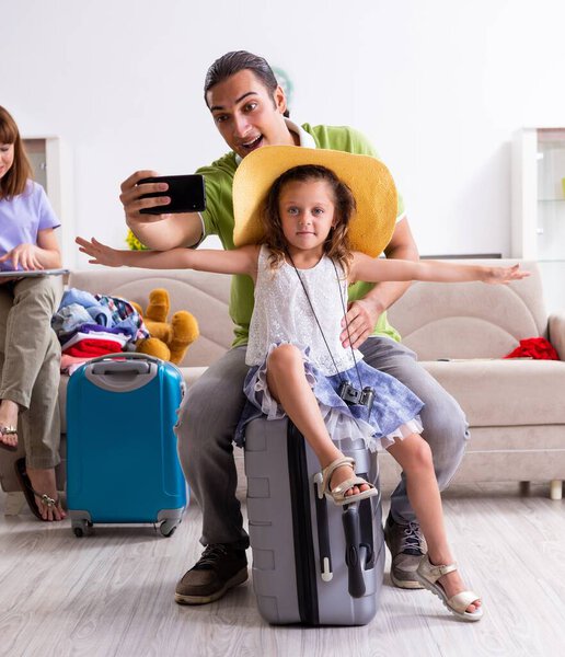103863668 Happy family tourist mother and child daughter suitcases packed for vacation