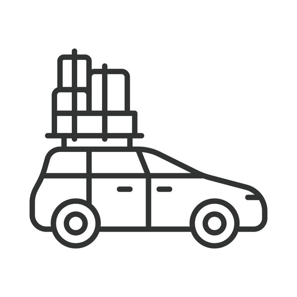 817608336 Car on vacation, icon in line design. Car, vacation, travel, road trip, holiday, vehicle, luggage on white background vector. Car on vacation editable stroke icon