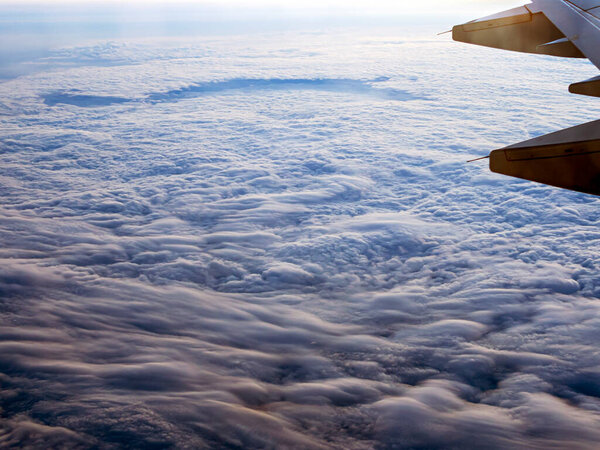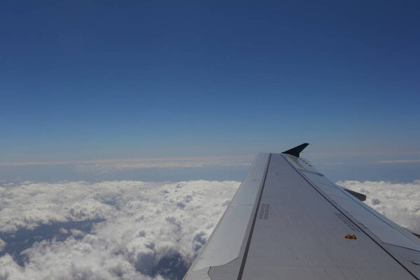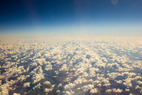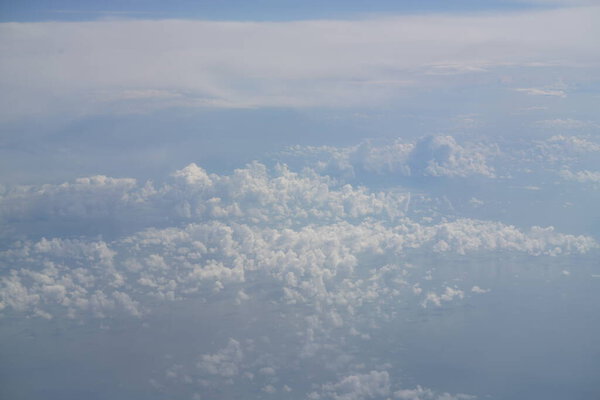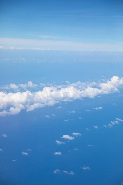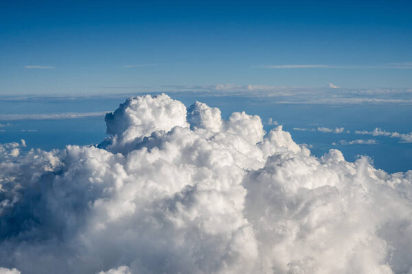 67375875 White clouds in a blue sky. Aerial view from airplane