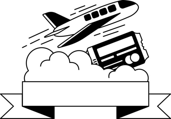 849112436 Black and white logotype of an Airplane and Airline Ticket