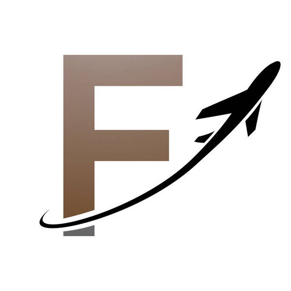 679013964 Brown and Black Uppercase Letter F Icon with an Airplane on a White Background