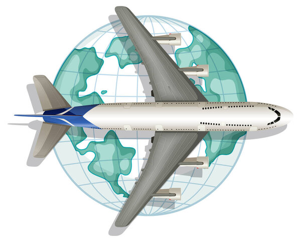 683990064 Blue and Black Uppercase Letter O Icon with an Airplane on a White Background
