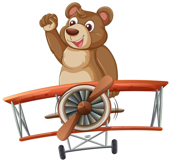719424350 Cartoon bear piloting an old-fashioned aircraft