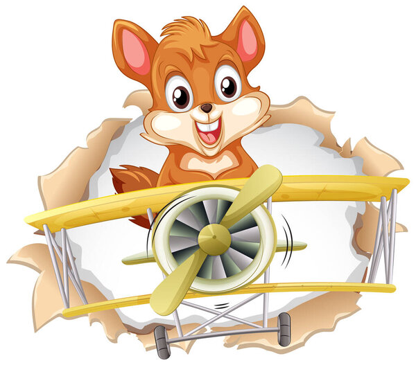 770923588 Happy squirrel piloting a yellow vintage airplane