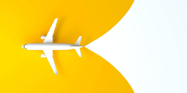 661935388 Airplanes on a white-yellow background with copy space. Minimal style design. Top view. 3d rendering illustration