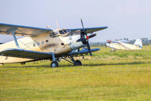 670400198 Stock photo of beautiful light aircraft parked in the landing strip.
