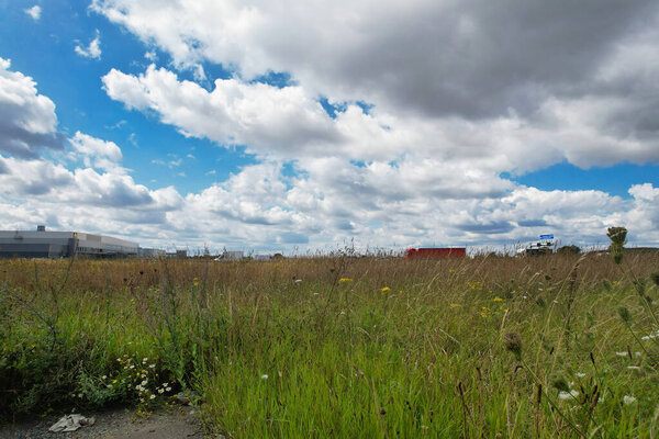 673143876 High Angle View of British Motorways and Highways and Traffic on M1 Junction 11a of Luton and Dunstable England UK. Image Was Captured on August 15th, 2023