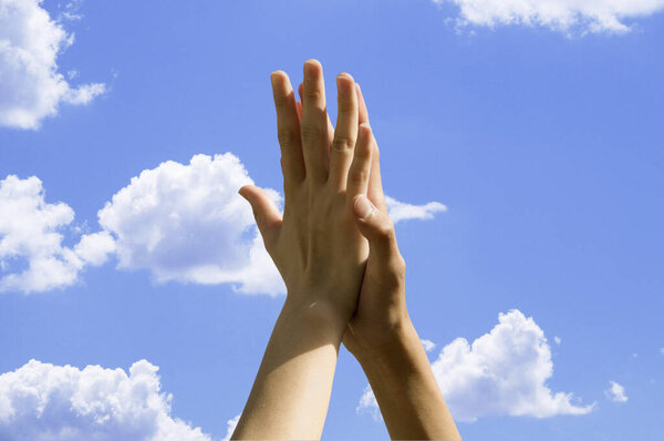 654622274 Happy family having fun on summer vacation. People playing outdoor. Mother, father and child against blue sea and sky background
