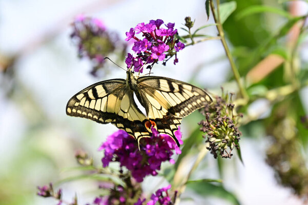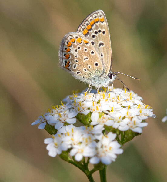 741451136 Beautiful butterfly on flowers on nature background