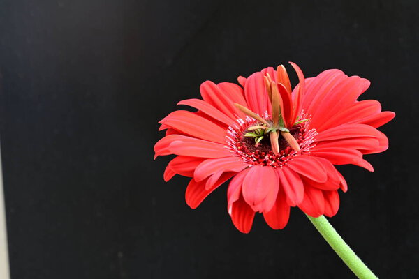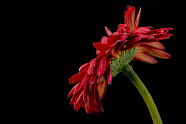 782735404 Beautiful gerbera flower close up view on black background