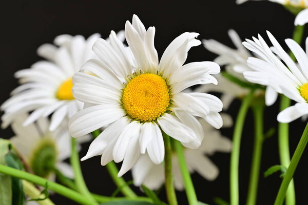 814511150 Beautiful white chamomiles flowers on dark background