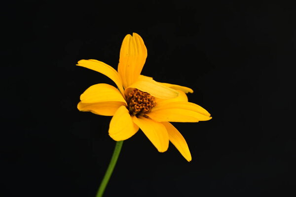 829788444 Close up of beautiful orange Heliopsis flower on black background