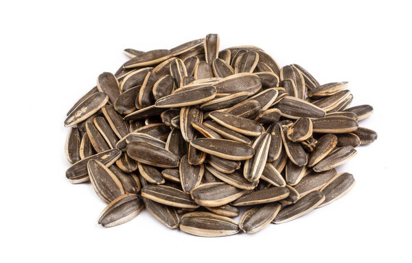 669600292 Sunflower seeds on the white background