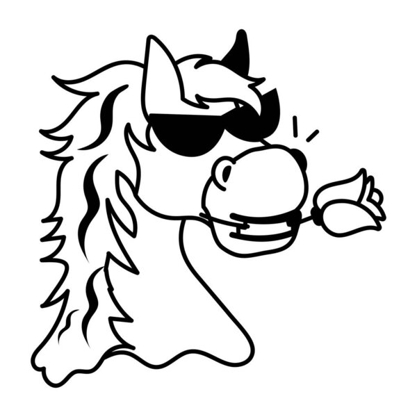 790640132 Black and white cartoon horse in sunglasses and with rose