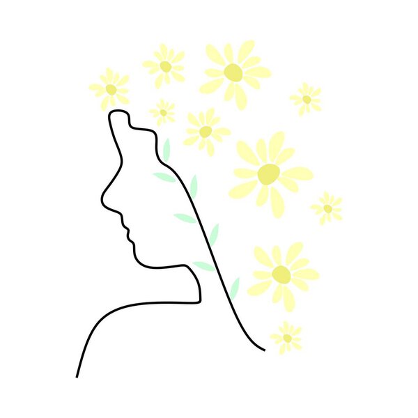 643054198 Woman with flower arrangement on her head in one line style, hand drawn illustration Beauty face. vector eps10