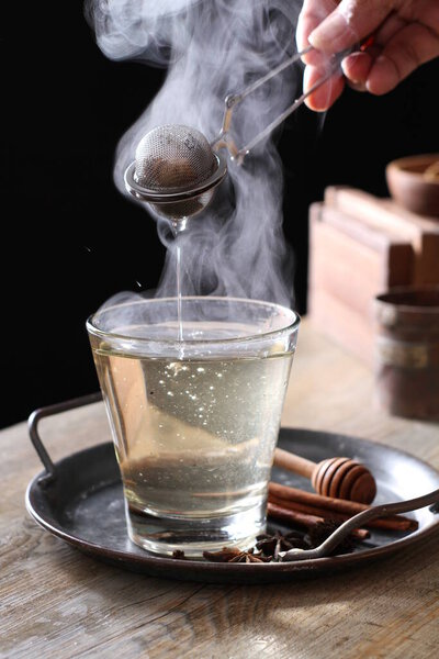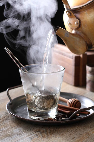 654512214 Tea is an aromatic beverage prepared by pouring hot or boiling water over cured or fresh leaves of Camellia sinensis, an evergreen shrub native to East Asia which probably originated in the borderlands of southwestern China