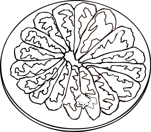 682884702 Diecious food on plate, simple black and white illustration isolated on white background