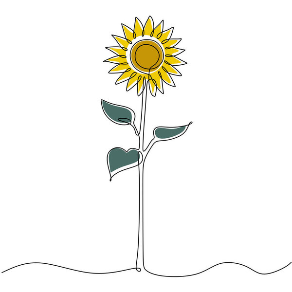 706487760 Line art sunflower flower. Continuous one single outline. Vector illustration isolated. Minimalist design handdrawn.