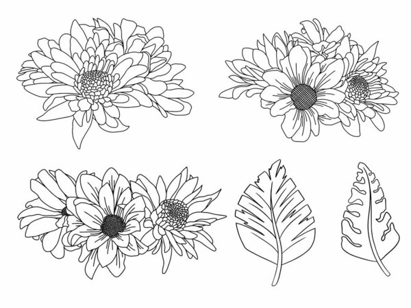 718976936 Line art drawing of beauty flower, Hand drawn line art flowers