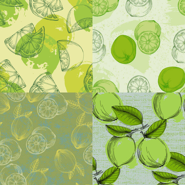 666407860 Seamless Lemon pattern with tropic fruits. Hand drawn vector illustration in sketch style for summer romantic cover, tropical wallpaper, vintage texture.