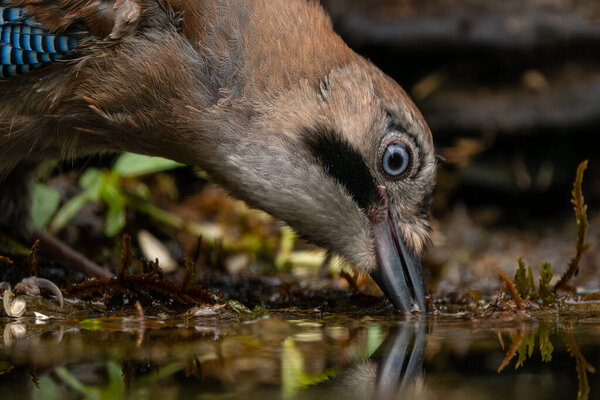 580234780 A closeup of a blue Eurasian jay (Garrulus glandarius) against the blurry background