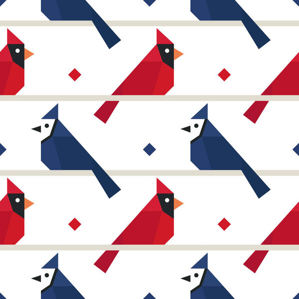 662535104 Red cardinal and Blue jay seamless pattern, vector illustration background