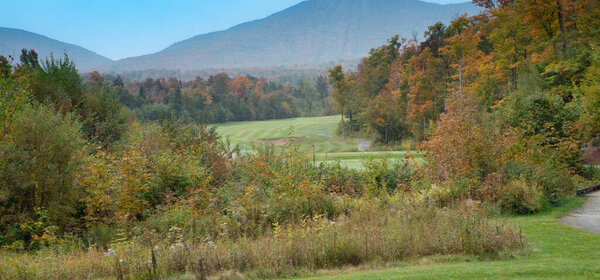 698644916 Nice hole on a golf club at fall in Vermont, USA, at Jay Peak