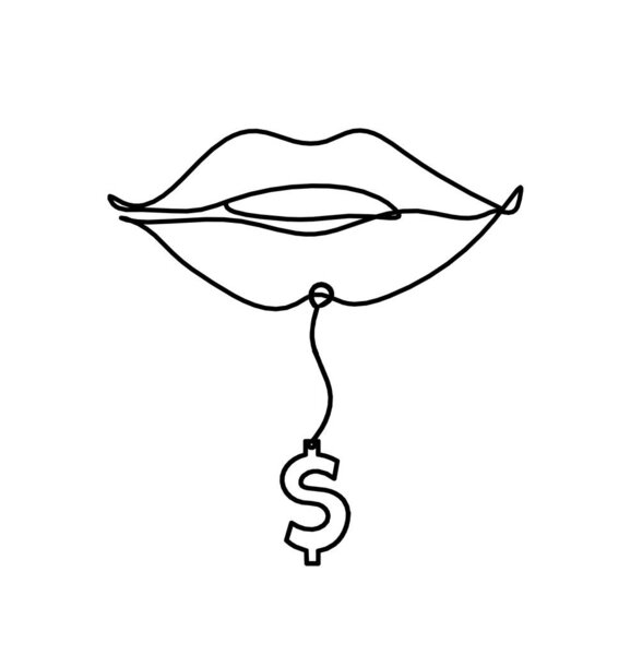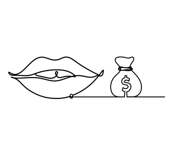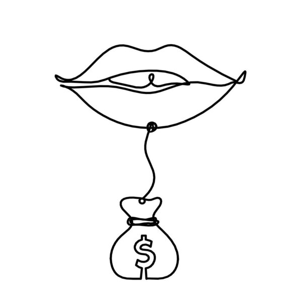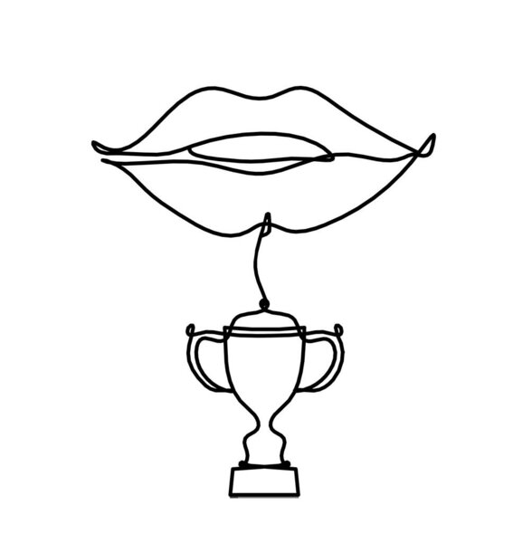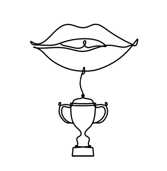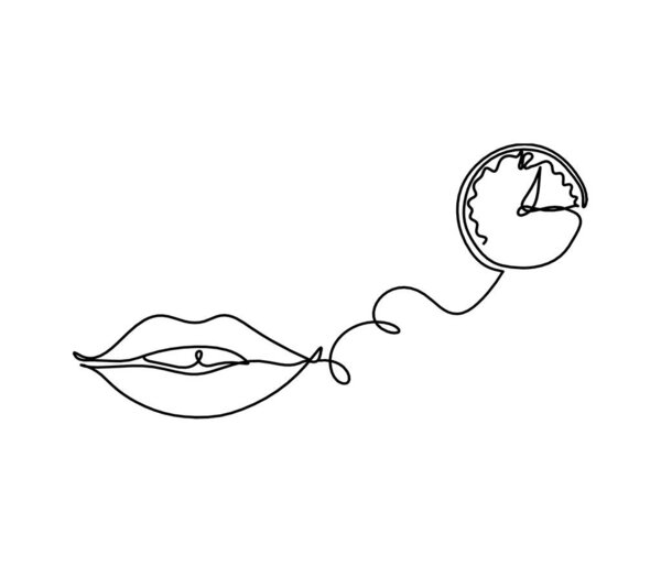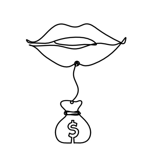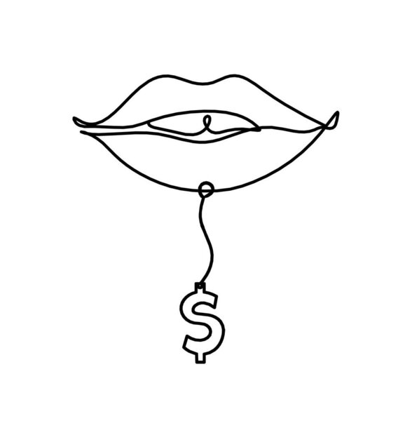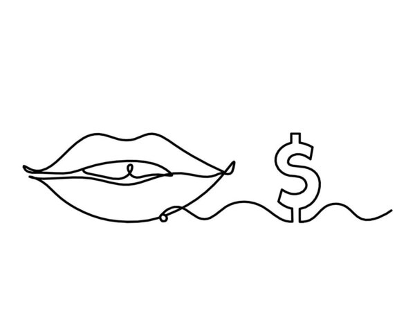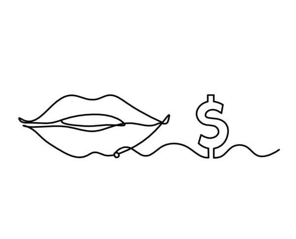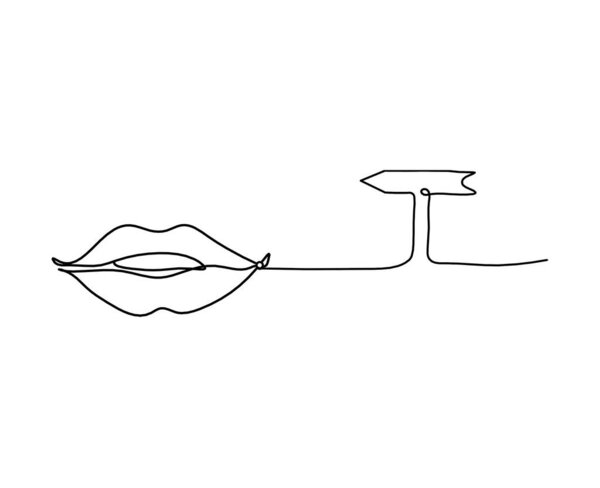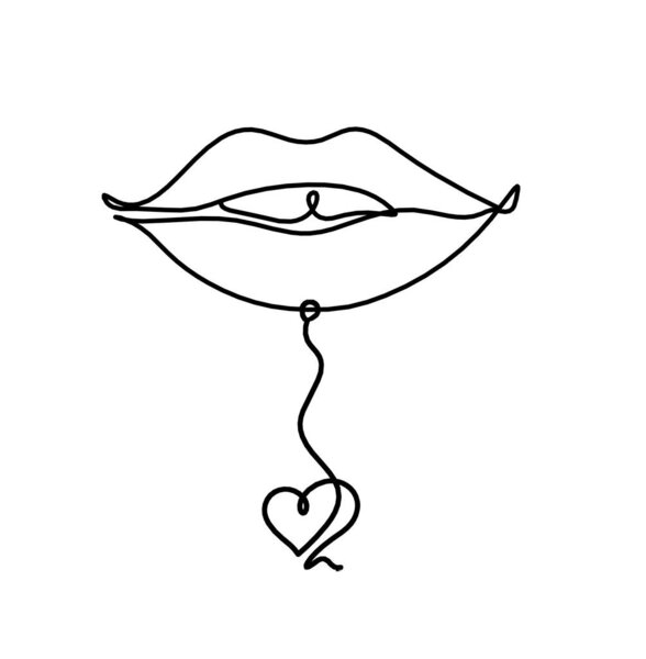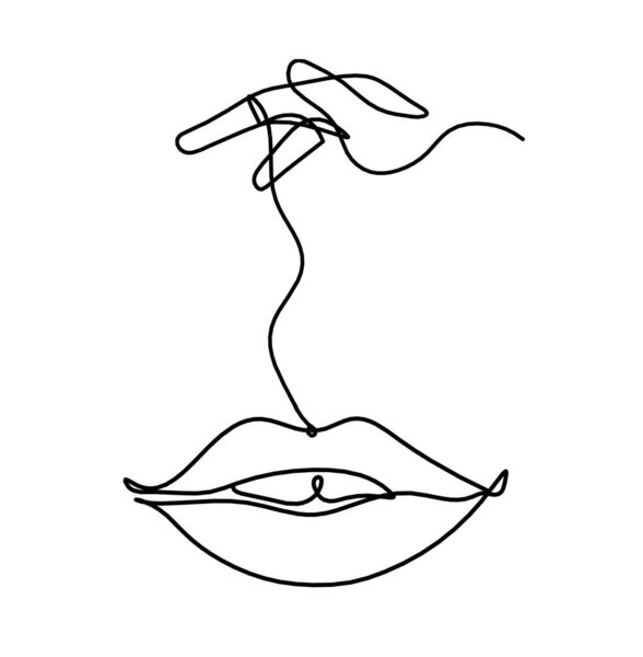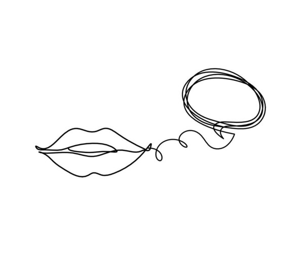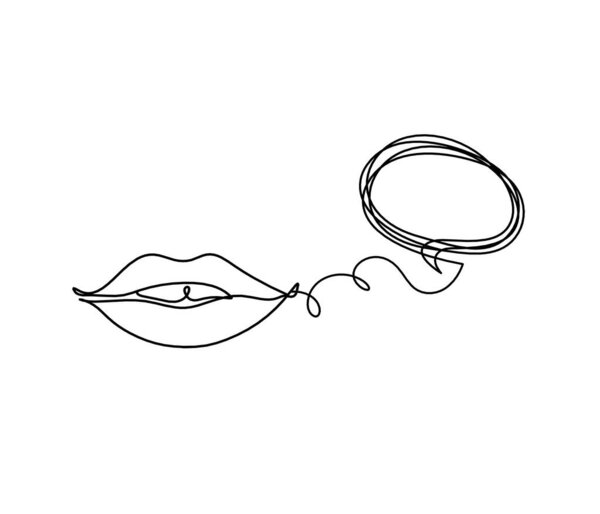 619335876 Woman lips with exclamation mark as line drawing picture on white