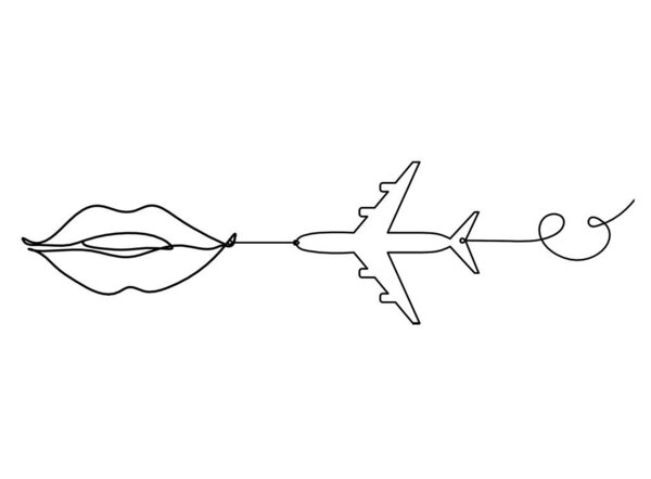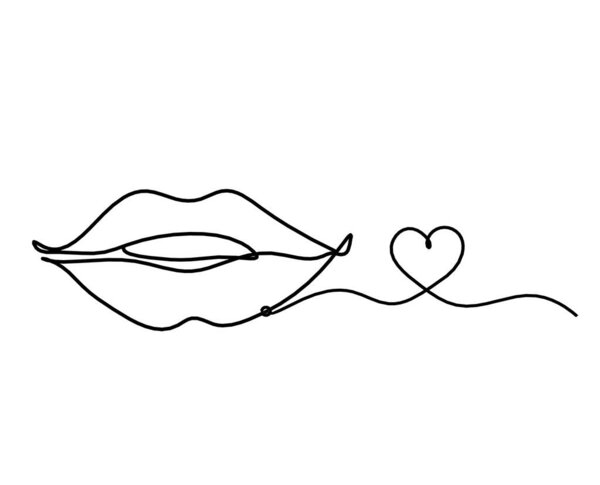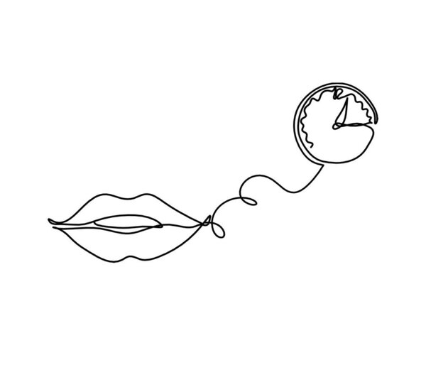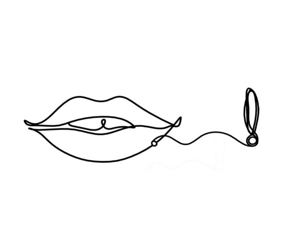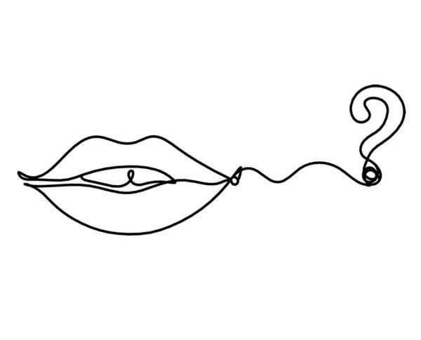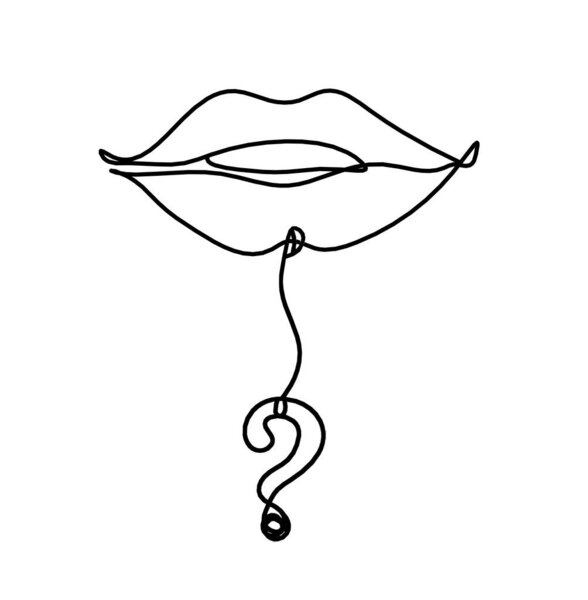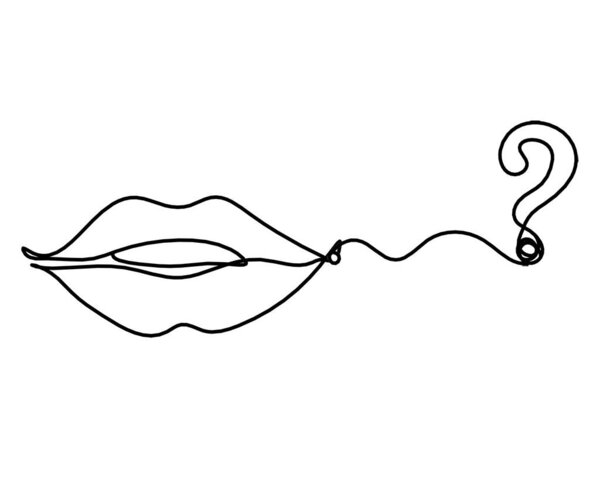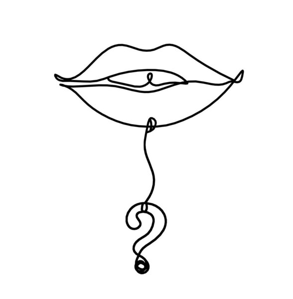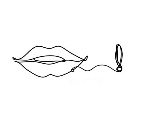 619335878 Woman lips with exclamation mark as line drawing picture on white