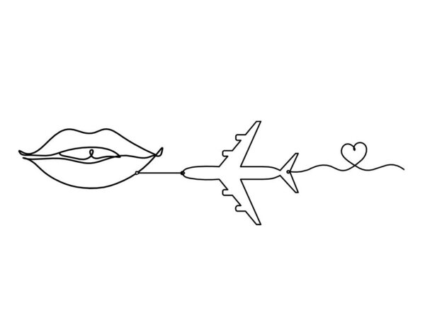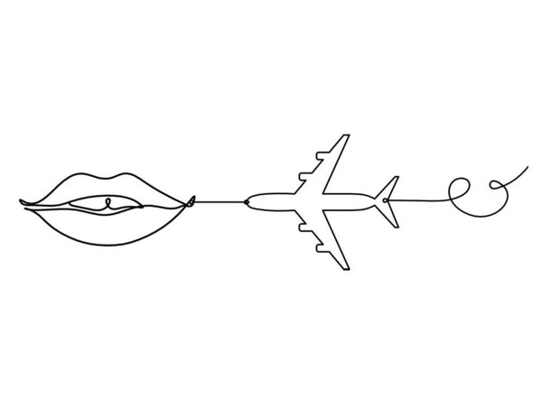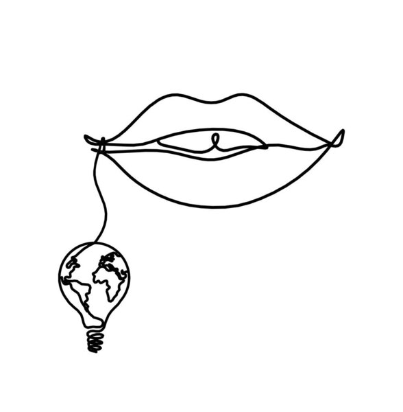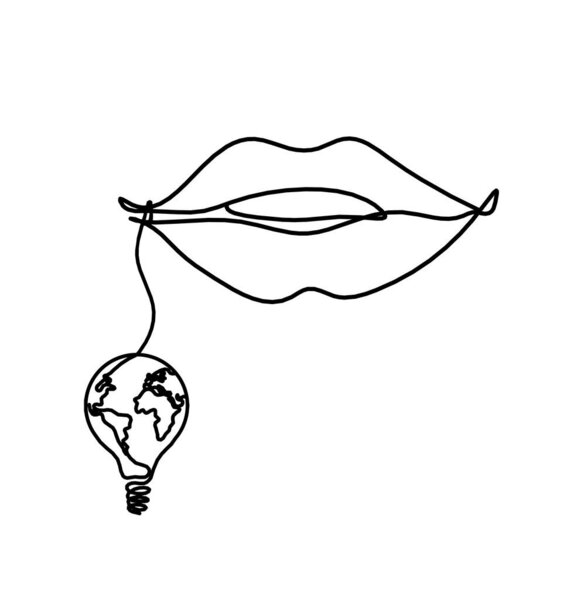 619335058 Woman lips with globe light bulb as line drawing picture on white