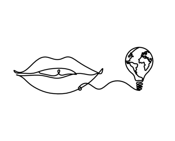 619335060 Woman lips with globe light bulb as line drawing picture on white