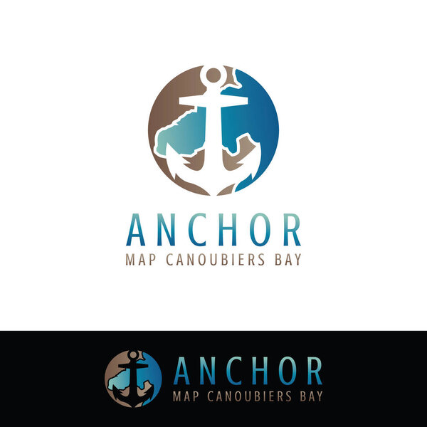 658238652 Anchor logo and canoubiers bay map, suitable for tourism, transportation, travel, shipping, maintenance, yacht rental etc.