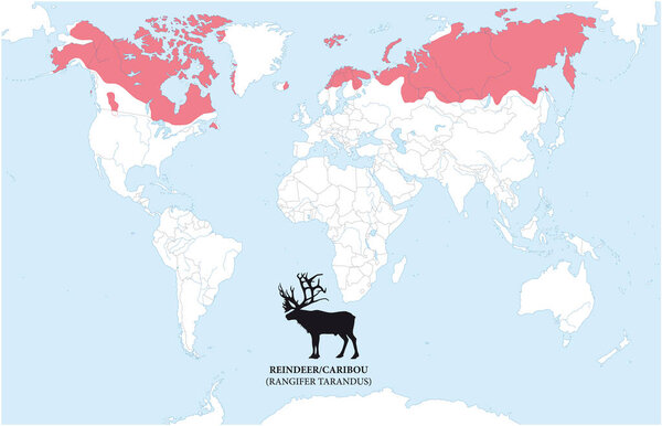 633171732 Map of the distribution and habitat of the reindeer, caribou