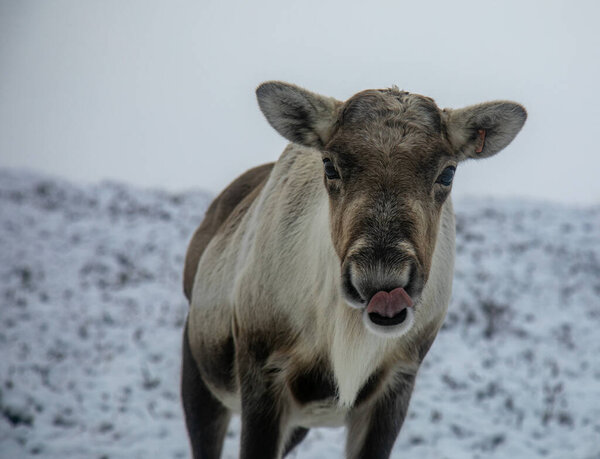 582118762 The cute little Caribou licking salt in Atlin
