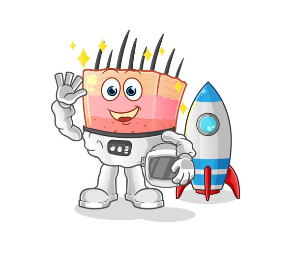 548081844 Skin structure astronaut waving character. cartoon mascot vector