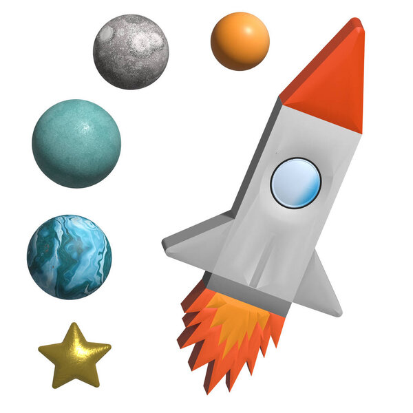 664696440 The space ship on the background of the planet.,3D render