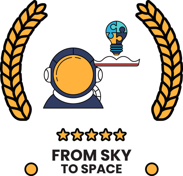 854224168 A logo for a company called From Sky to Space. The logo features a man in a spacesuit holding a light bulb. The logo is designed to convey a sense of innovation and exploration