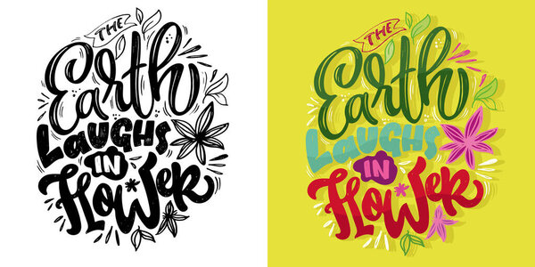 756879372 The Earth laughs in flower. 100% hand drawn vector image. Lettering quote for t-shirt design, mug print, bag print, clothes fashion.