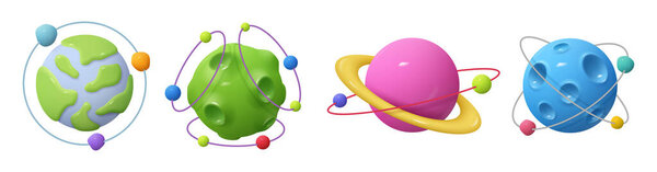 670963200 Icon planet Saturn, Jupiter, Uranus, Neptune with ring around realistic 3d vector illustration. Cute alien worlds symbols, astrology outer space cartoon space plants, galaxy set