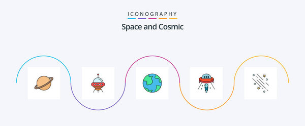 636204000 Space Line Filled Flat 5 Icon Pack Including discovery. world. ship. globe. space