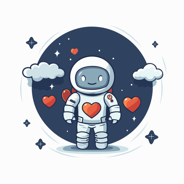 704712390 Astronaut with heart. Vector illustration. Cute cartoon character.